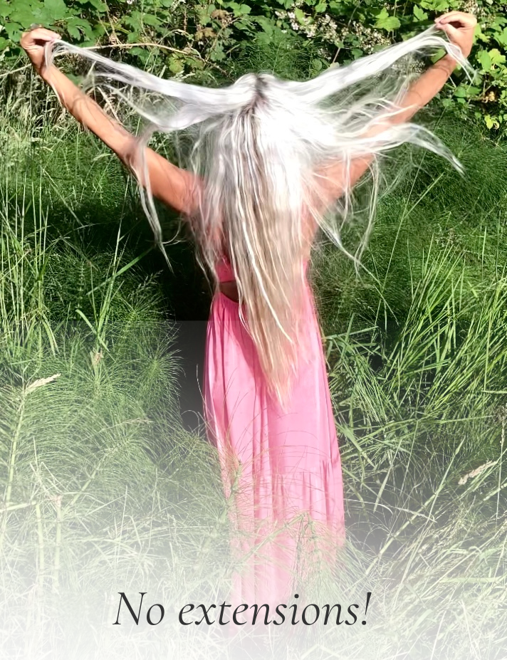 I created this magic from wild plants I gathered while living offline in the forest. My hair is bleached and 100% real. I’ve grown at least 10% NEW hairs every year! Watch my transformation below…